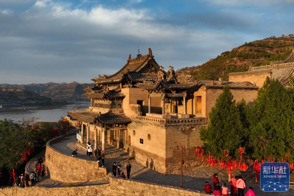 "新華社發(fā)(劉亮亮 攝)↑ 山西省呂梁市臨縣磧口古鎮(zhèn)一角(10月29日攝,無人機照片)。" 磧口新生 古鎮(zhèn)新“味”